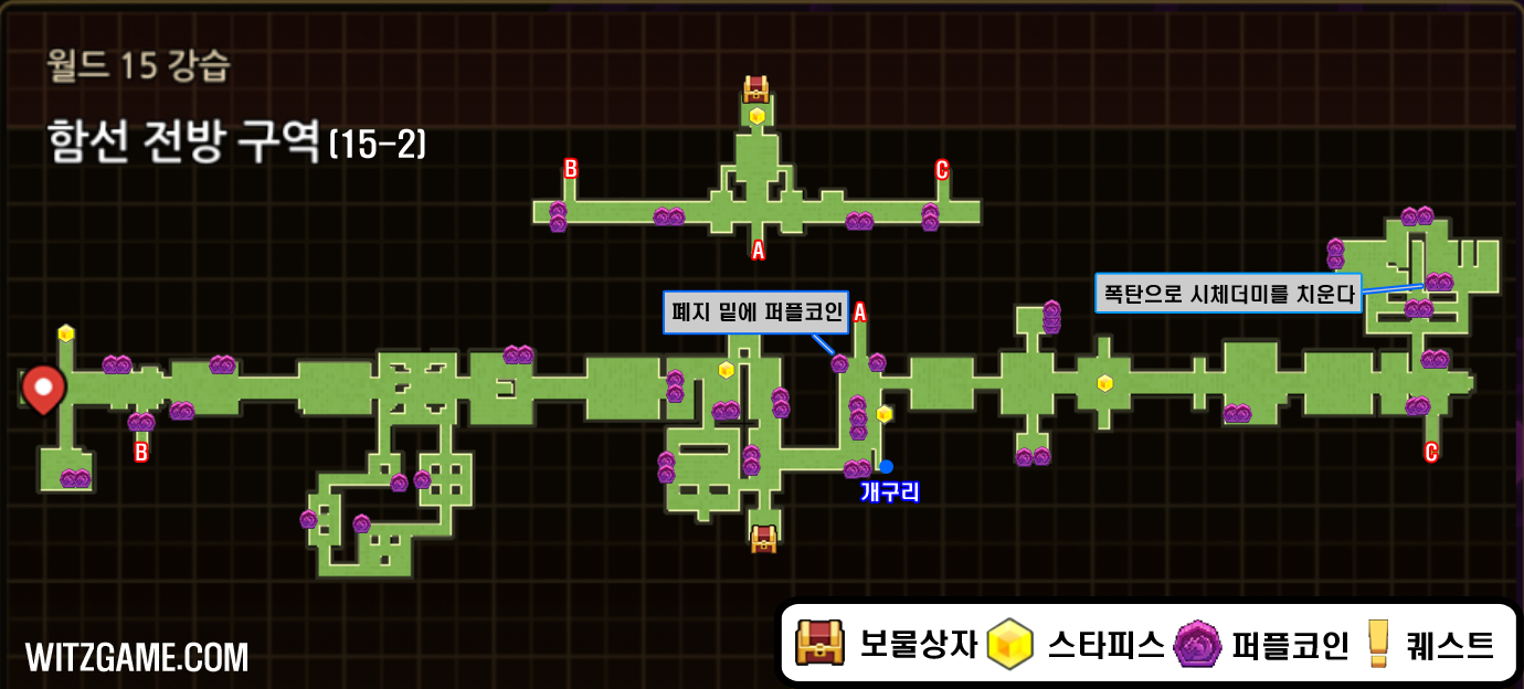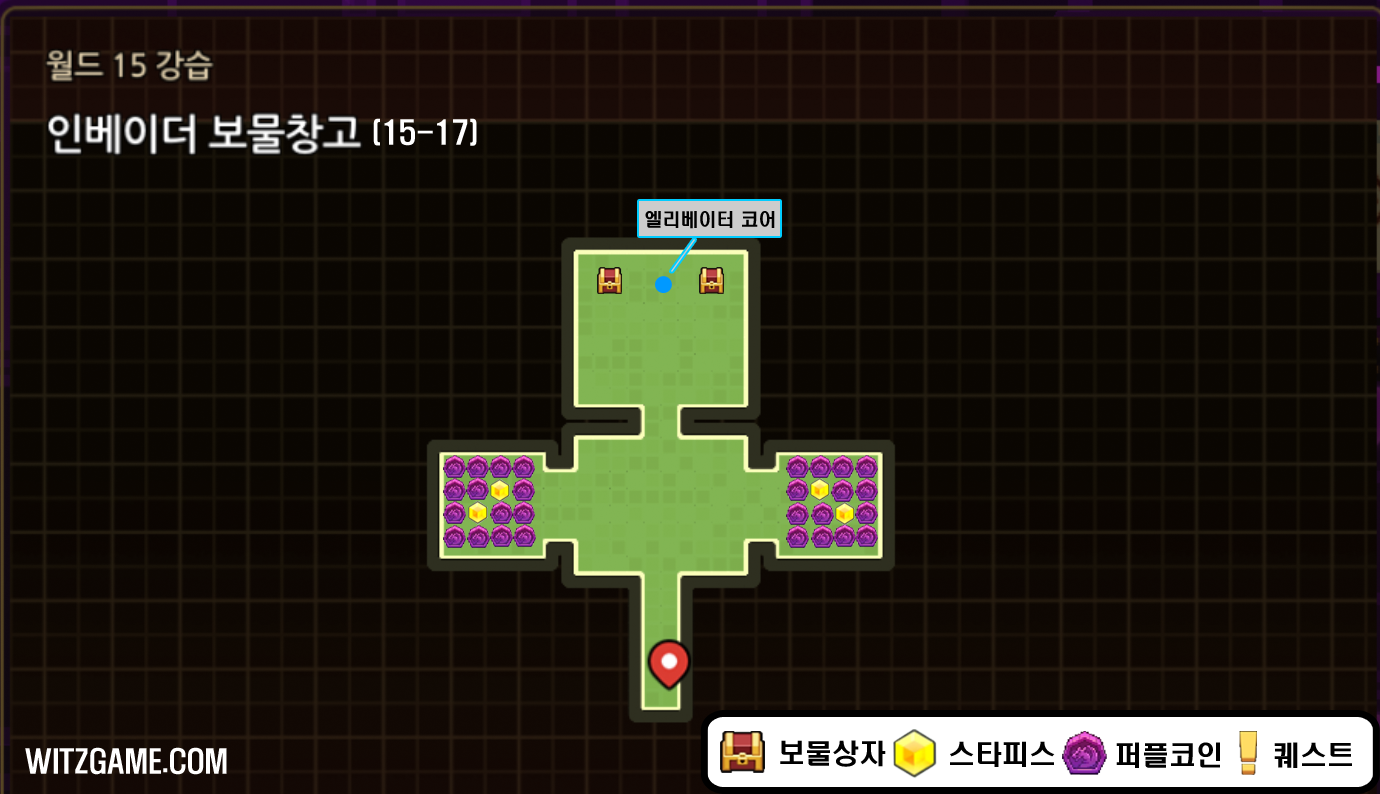 가디언테일즈 월드15-17 인베이더 보물창고(개구리 찾기) 공략입니다.