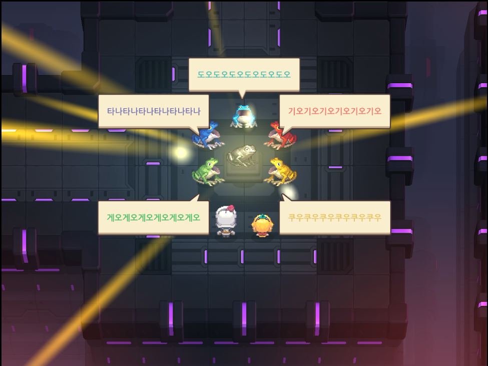 3. 15-5 중앙 제어실에 노랑 개구리가 있다. 좌우로 움직이는 개구리에게 다가간다.