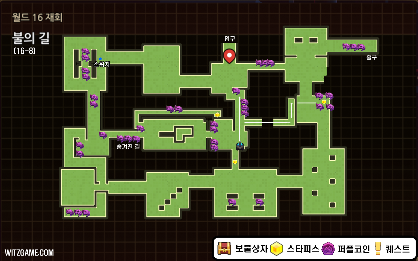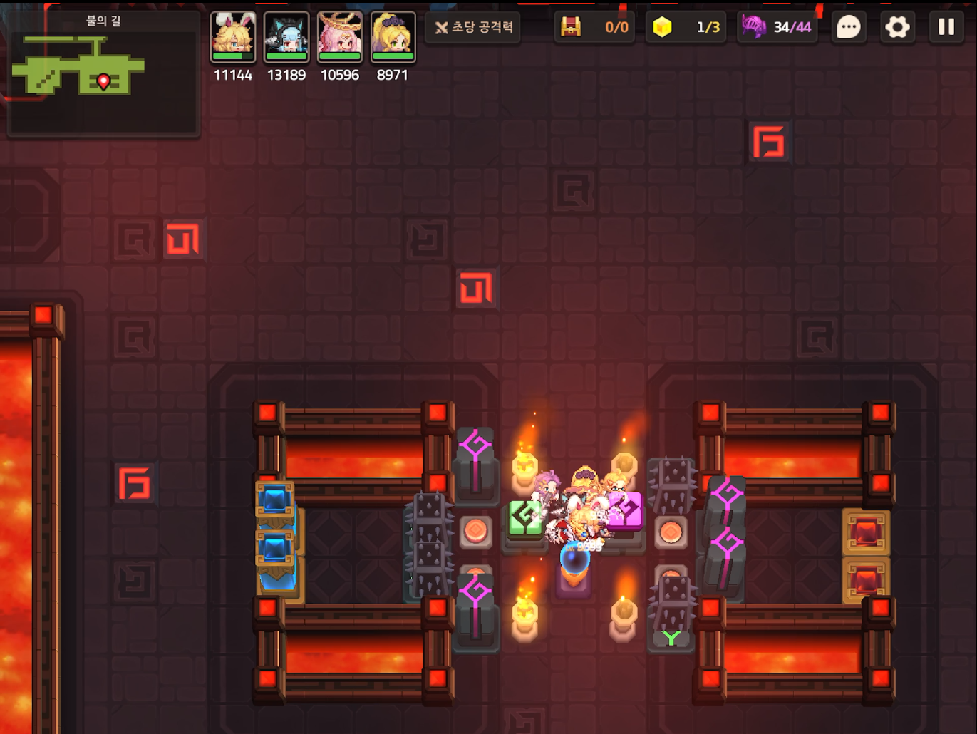 한 방향의 가시 함정은 방 안에 가둬두고, 나머지 가시 함정은 방 밖을 돌게하면 휏불 4개의 불이 밝혀지며 길이 열린다. 이상으로 가디언 테일즈(Guardian Tales)16-8 불의 길 공략을 마칩니다.