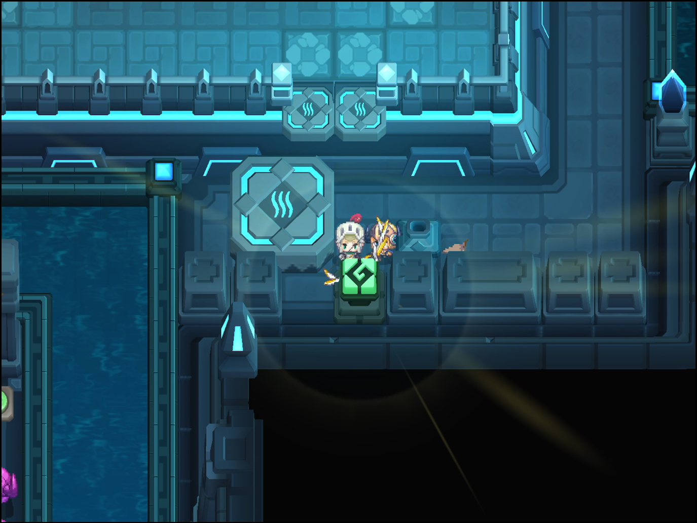 부표와 스위치를 위의 사진 처럼 배치하고 건너가서 MK.99에게 말을 건다. 서브 스테이지 16-19 전투형 안드로이드 추적이 오픈된다.