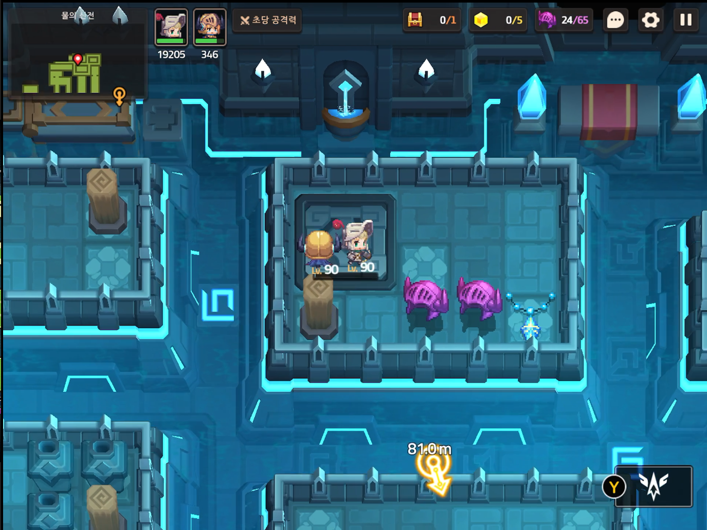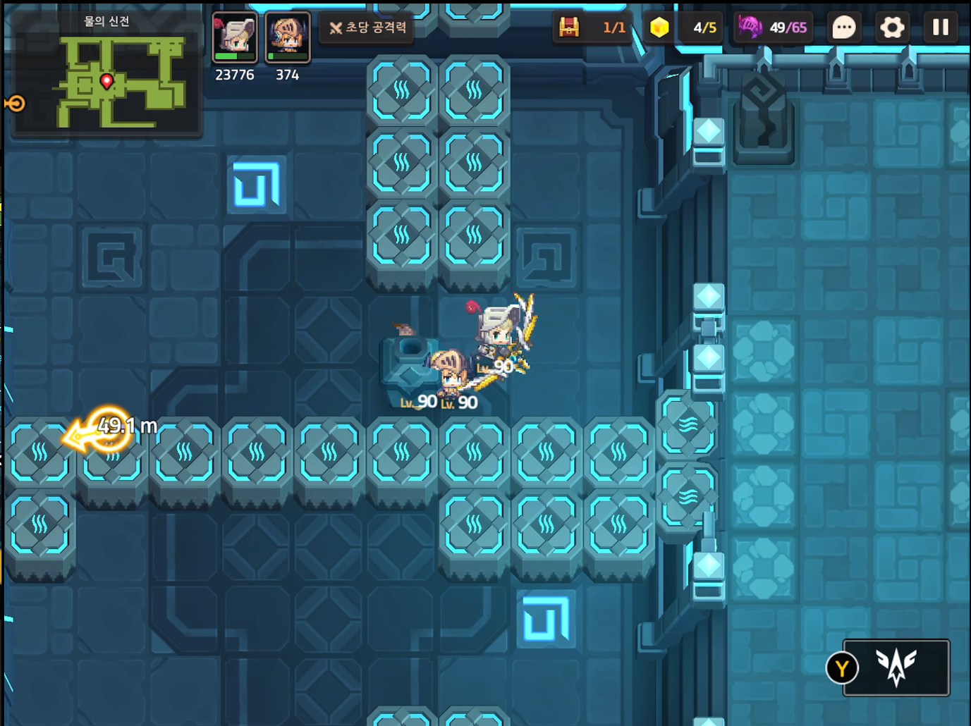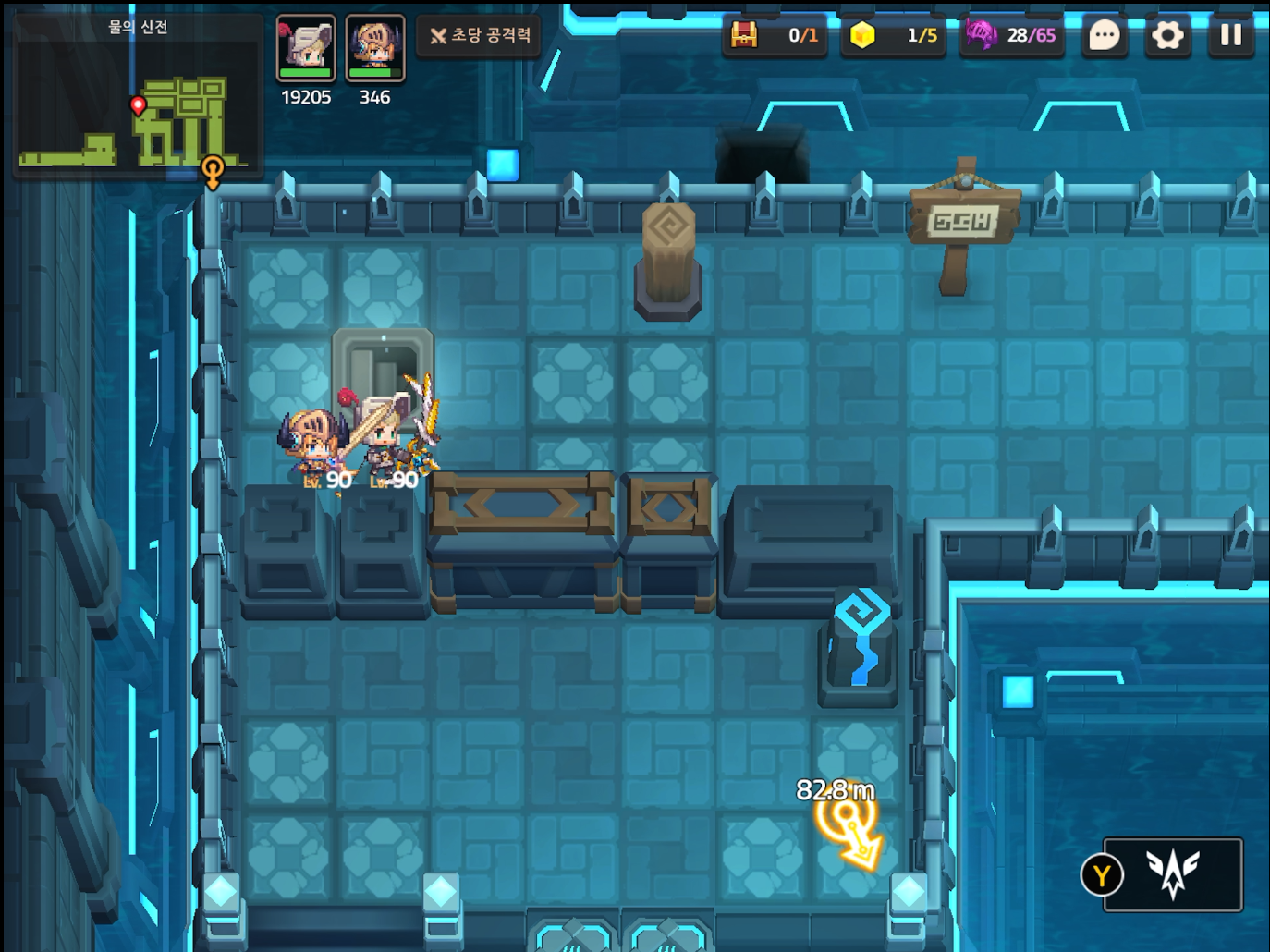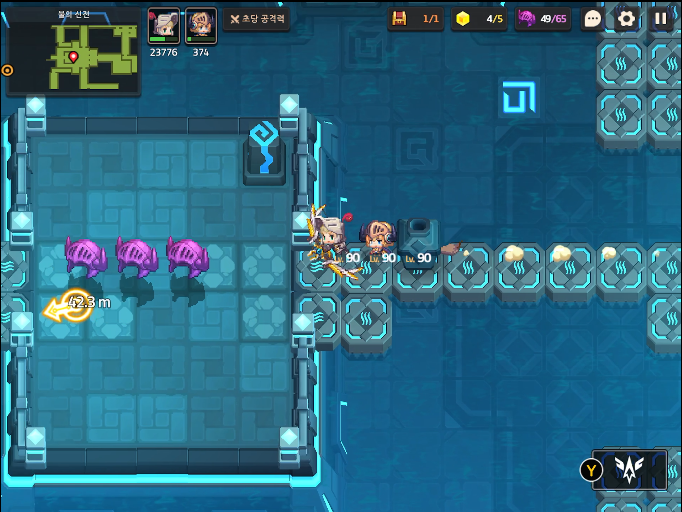 부표와 스위치를 위의 사진 처럼 배치하고 건너가서 MK.99에게 말을 건다. 서브 스테이지 16-19 전투형 안드로이드 추적이 오픈된다.