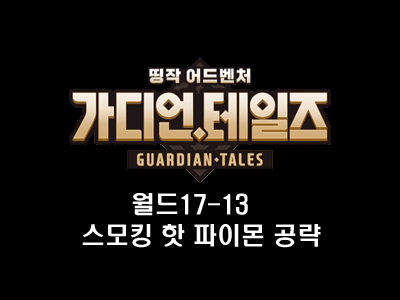 이상으로 가디언테일즈 월드17-13 스모킹 핫 파이몬 공략을 마칩니다.