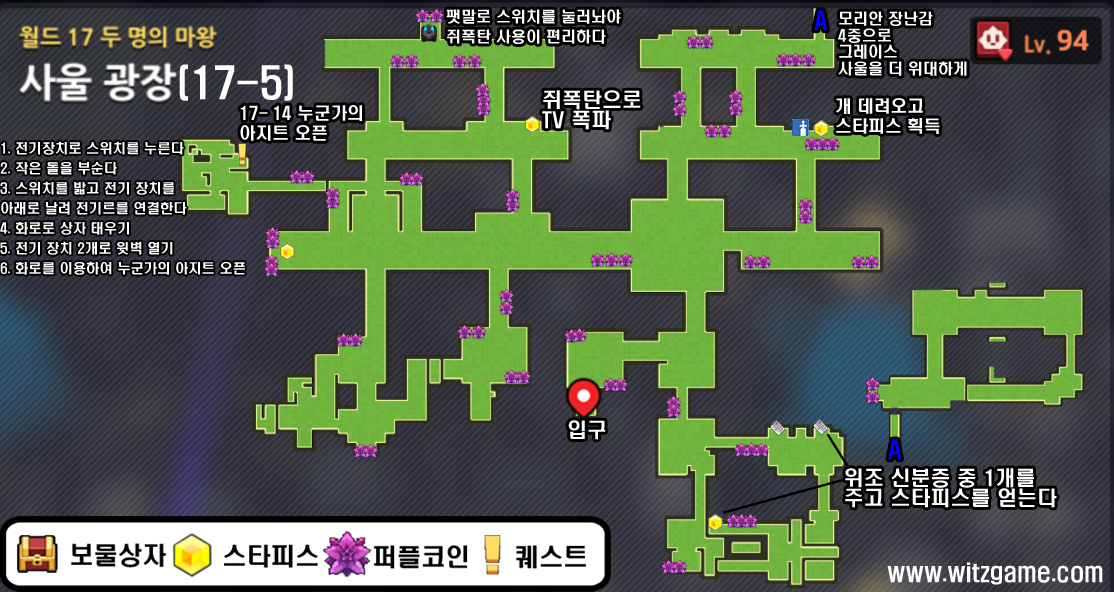 가디언테일즈 월드17-5 사울 광장 공략입니다. 비네트의 봉인을 풀기위한 이번 스테이지는 다행히 어려운 퍼즐과 전투가 없습니다. 맵의 구조는 단순하지만 크기가 큰 편이라 약간 시간이 걸릴 뿐입니다.