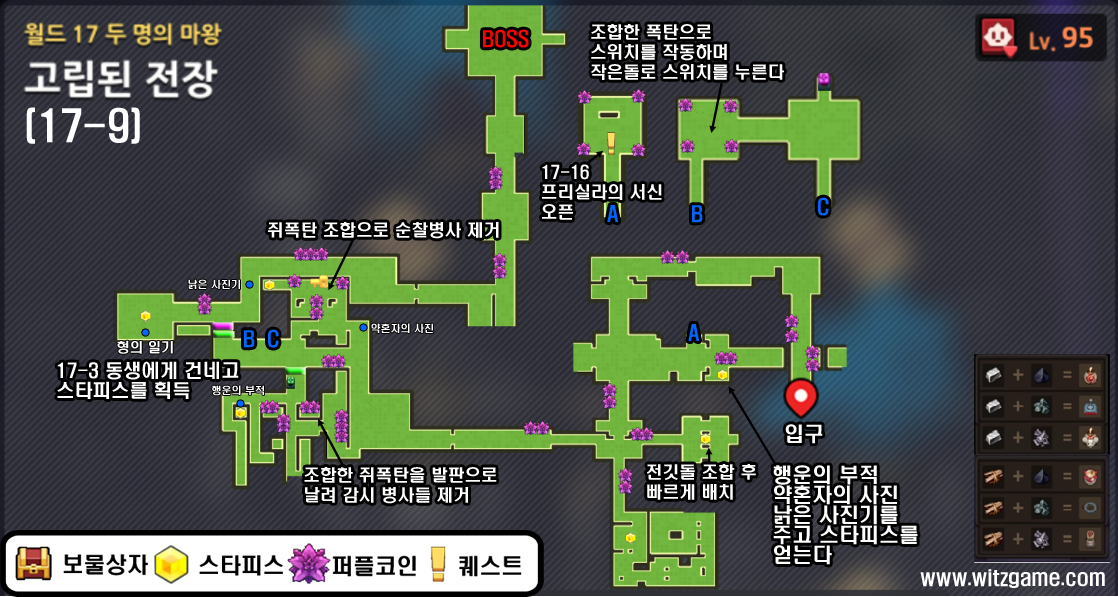 가디언테일즈 월드17-9 고립된 전장 공략입니다. 전투가 어렵진 않은데 퍼즐의 갯수가 많습니다. 특히 컨트롤이 필요한 미니 게임류가 있어 의외로 시간이 오래 걸릴 수 있는 스테이지 입니다.