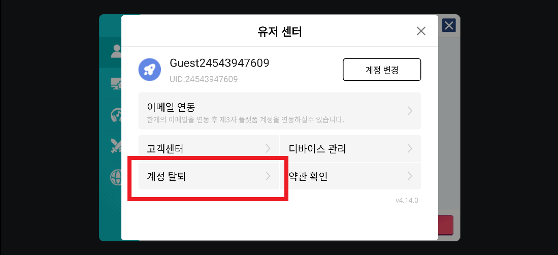 7. 원하는 여행가 파티를 구성하지 못했을 경우 홈 화면 오른쪽 상단의 메뉴 - 설정 - 계정 - 계정 보안 - 유저센터 - 계정 탈퇴를 진행한다. 그리고 다시 게스트 계정을 생성 후 여행가 모집을 반복하여 스텔라 소라 리세마라를 한다.