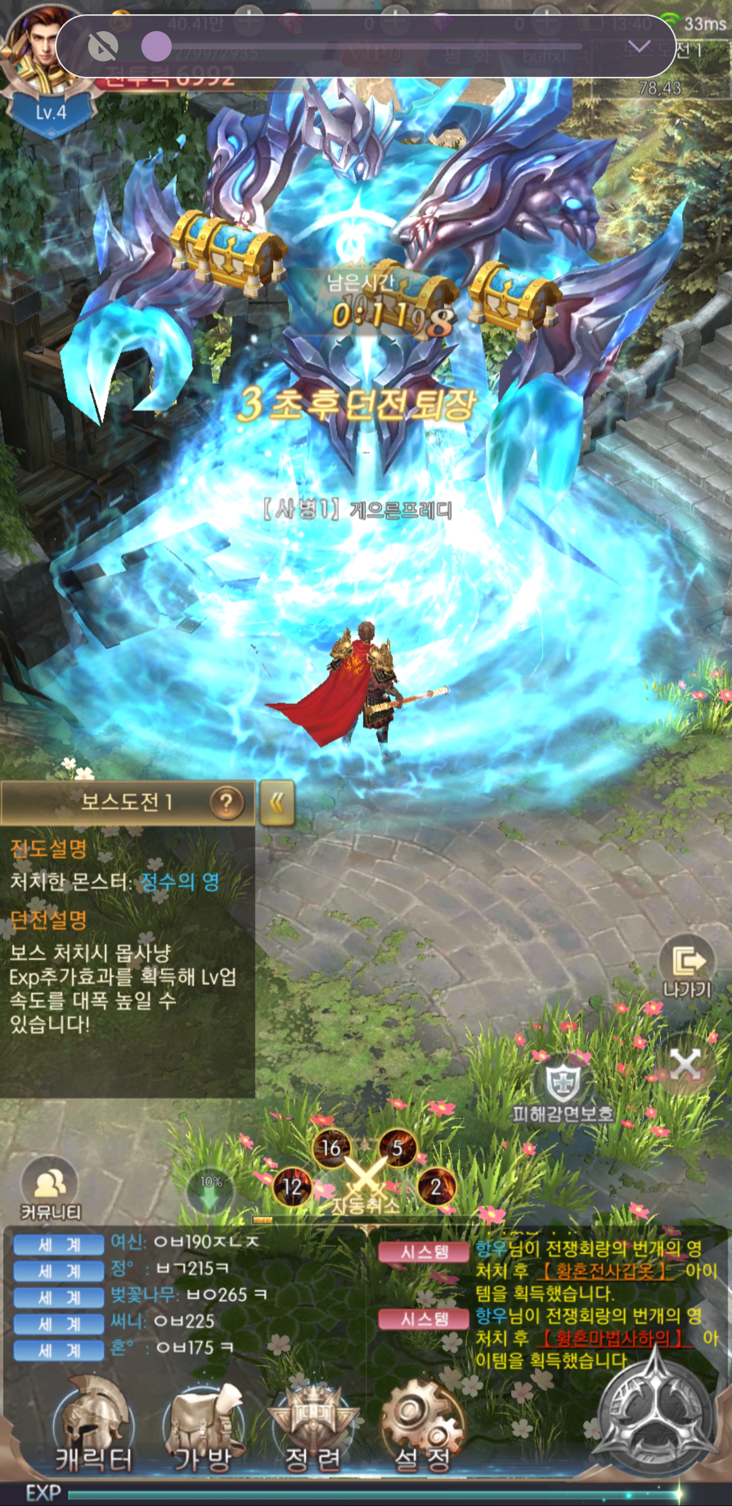 기적의 검 화면 왼쪽 하단에 표시되는 몬스터 사냥 퀘스트는 자동으로 진행되므로 게이머가 신경쓸 부분은 전혀 없다.