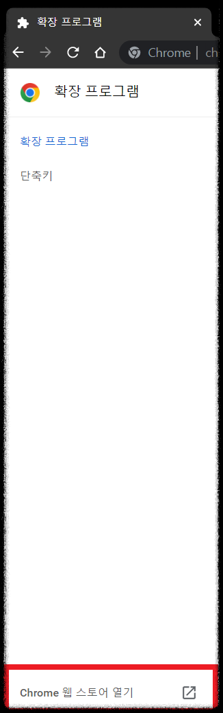 ④ 왼쪽 하단 Chrome 웹 스토어 열기 클릭