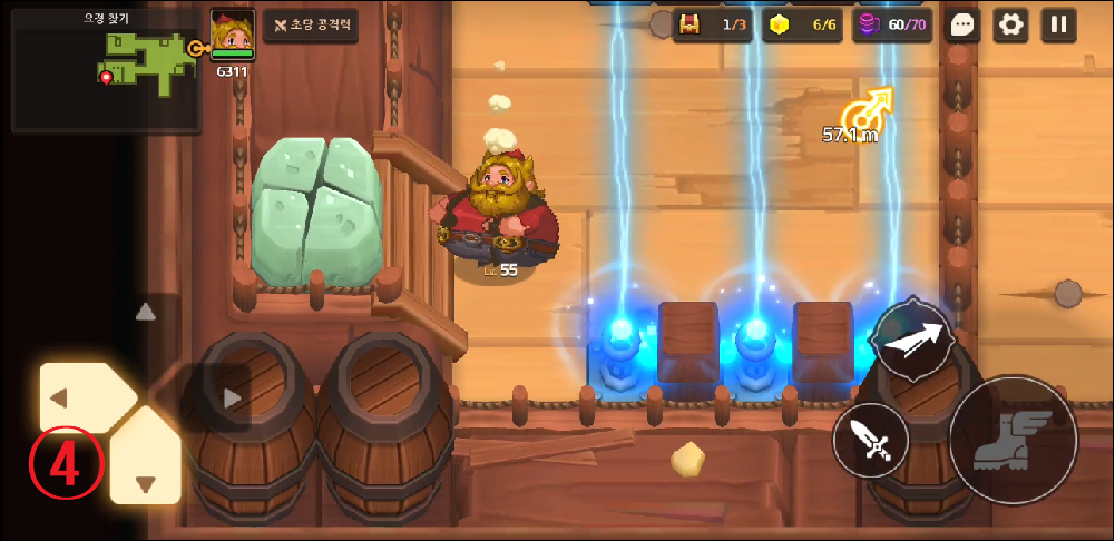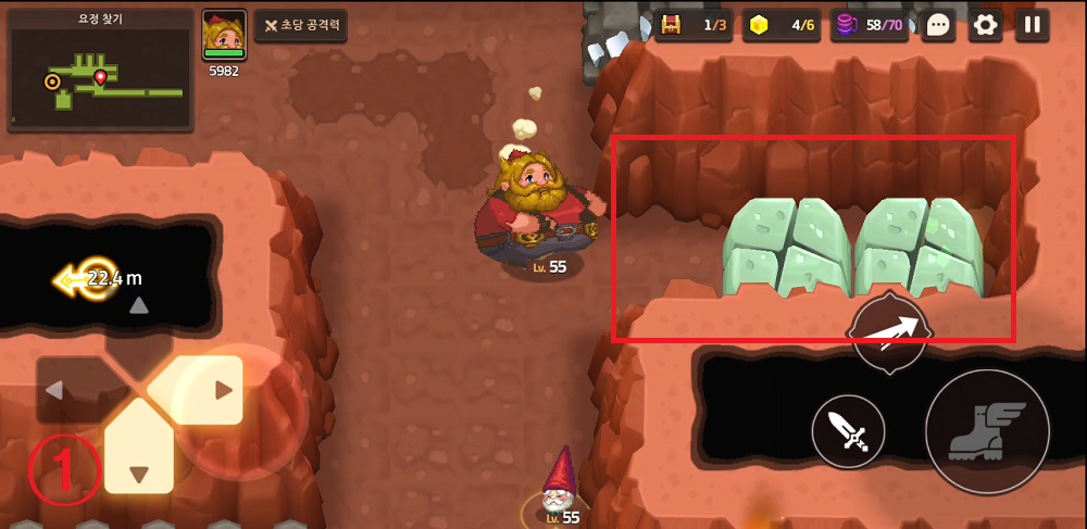 4. 바보 노움의 공격으로 바위를 부수면 금화가 있는 방으로 갈 수 있다.