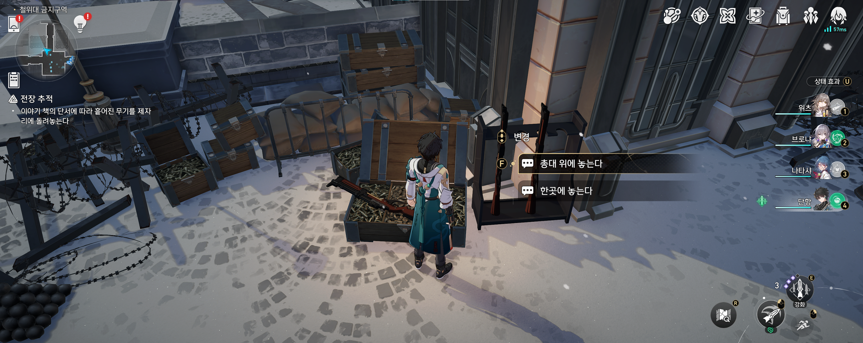 3. 전장 추적 위치 : 철위대 금지구역의 깊은 곳, 설원의 참호에 있다고 알려줍니다.