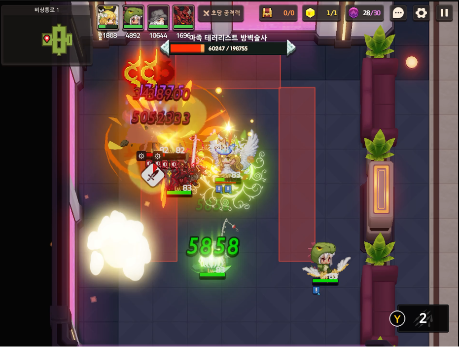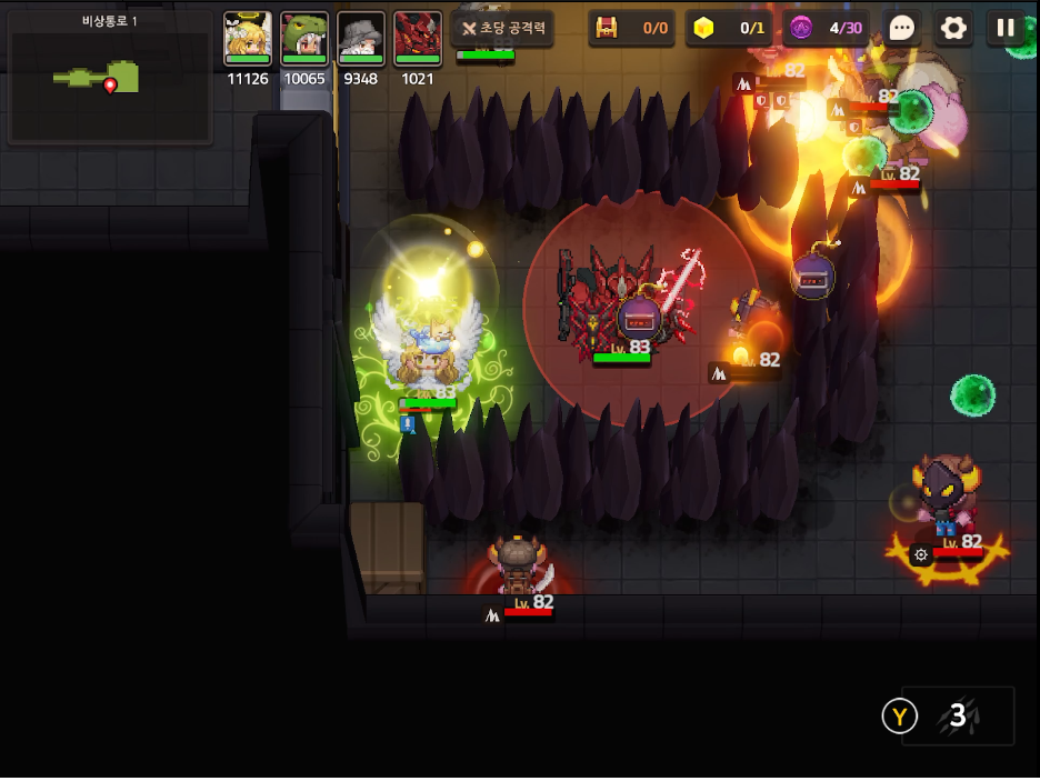강력한 피해를 주는 폭탄병이 다시 등장합니다. 장벽에 갇혀 폭탄을 맞게되면 한방에 부활을 클릭해야하는 상황이 발생합니다. 일단 시한폭탄을 피하기 위해서는 절대 ㄷ자 장벽에 갖혀서는 안됩니다. 바닥에 장벽 표시가 등장하면 최대한 스테이지 중앙 부분으로 이동하여 갖히는 상황을 피하시길 바랍니다.