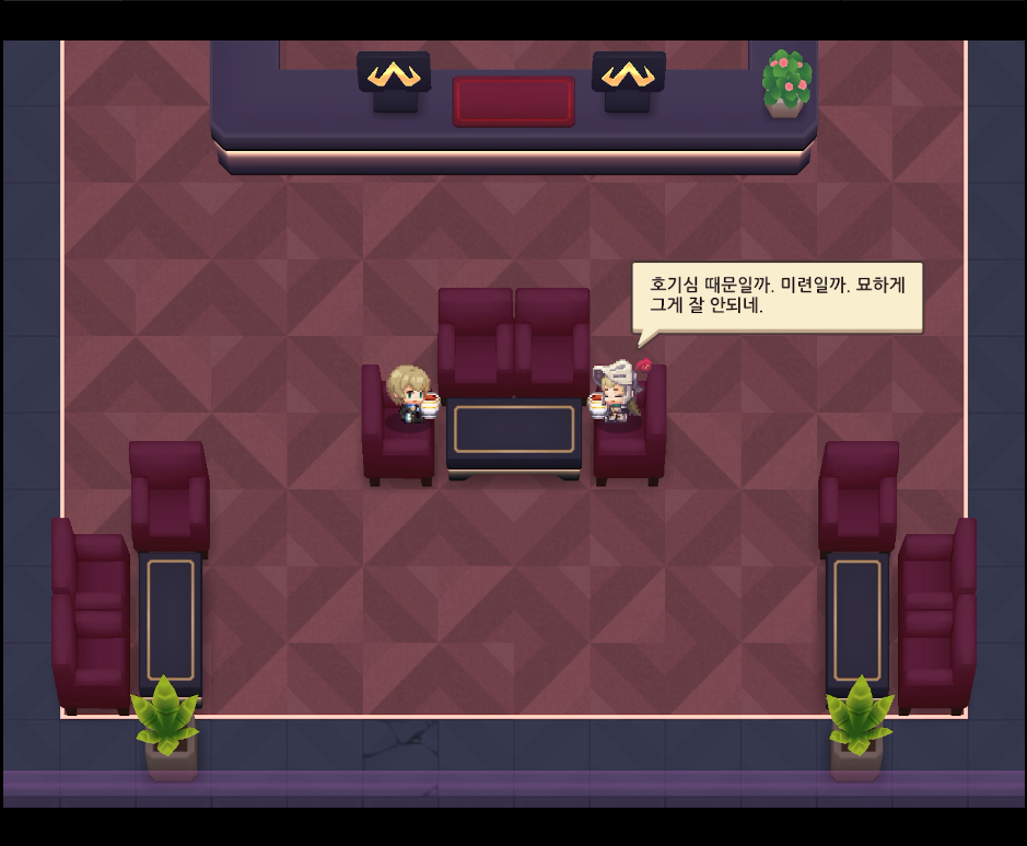 공주와 기사는 리리스의 집무실에 도착합니다. 하지만 보안 시스템의 공주의 예상과 다르게 바뀐 상황이었고, 공주는 시간이 약간 걸릴것 같다고 말합니다. 공주가 시스템을 보는 동안 주변을 돌며 퍼플코인과 스타피스를 챙겨줍니다.