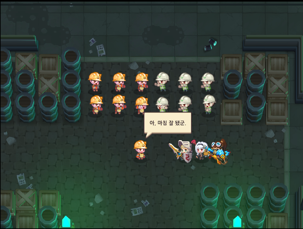 운송허가증을 얻고 ②왼쪽 아래의 사람에게 말을 겁니다. 대화창은 한가해 보이는데?를 선택합니다. 한가하다는 말을 듣고 화를 내지만 전력 관리동에 갈 사람이 안온다는 힌트를 듣게 됩니다.