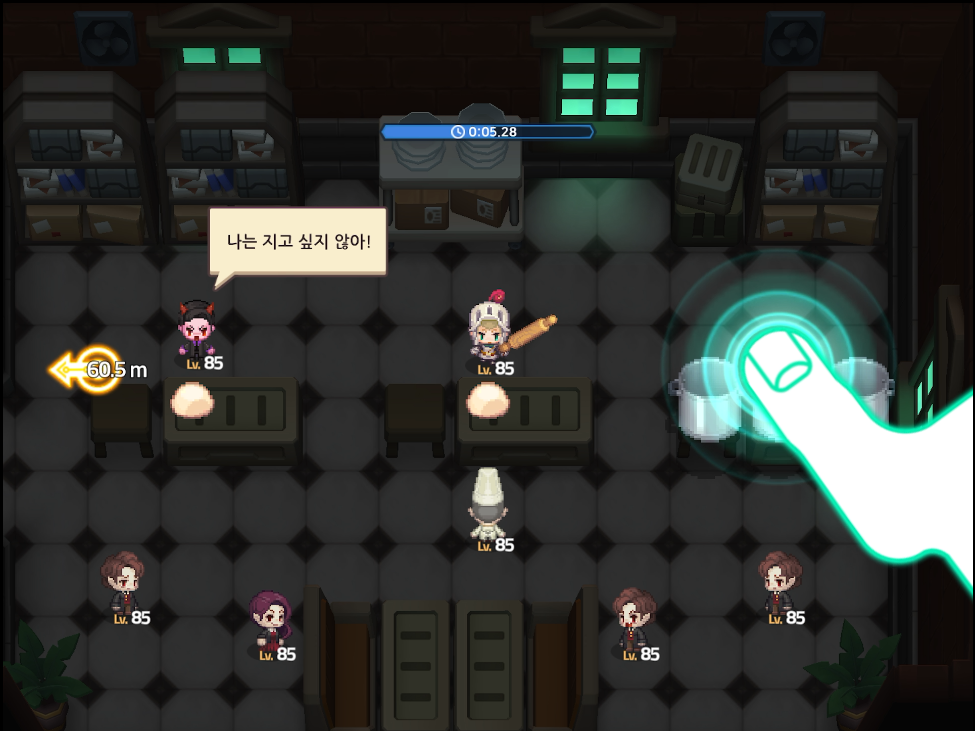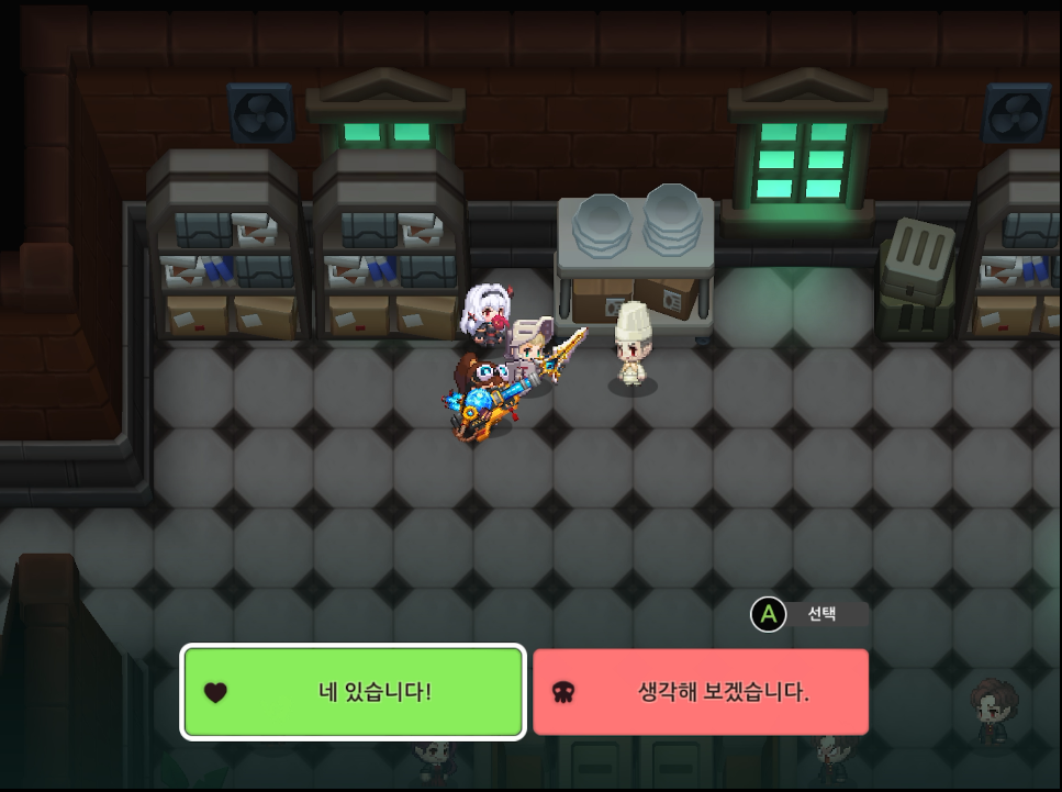 쥐가 이동한 소파 뒤가 비밀통로입니다. 잠자고 있는 사람을 흔들어 깨우지만 반응이 없습니다. 다른 대화 선택지 목을 자른다를 선택하면 사람이 깨어납니다. 이상으로 가디언테일즈 월드14-6 뱀파이어 공략을 마칩니다.