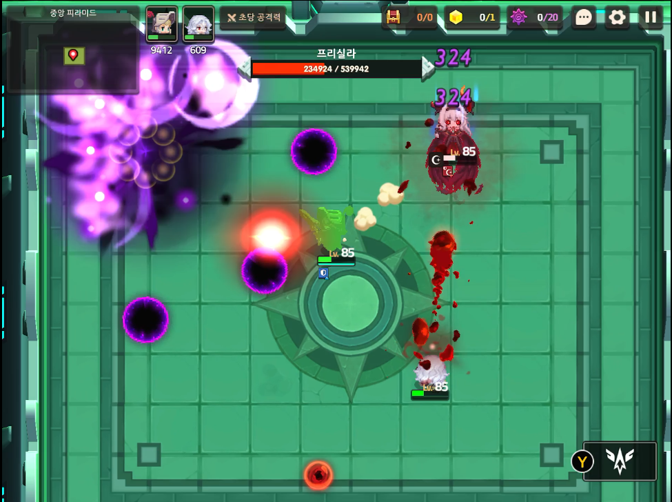 프리실라 주변에 5개의 구슬이 생성됩니다. 프릴실라로부터 멀리 떨어져 피하면 됩니다.