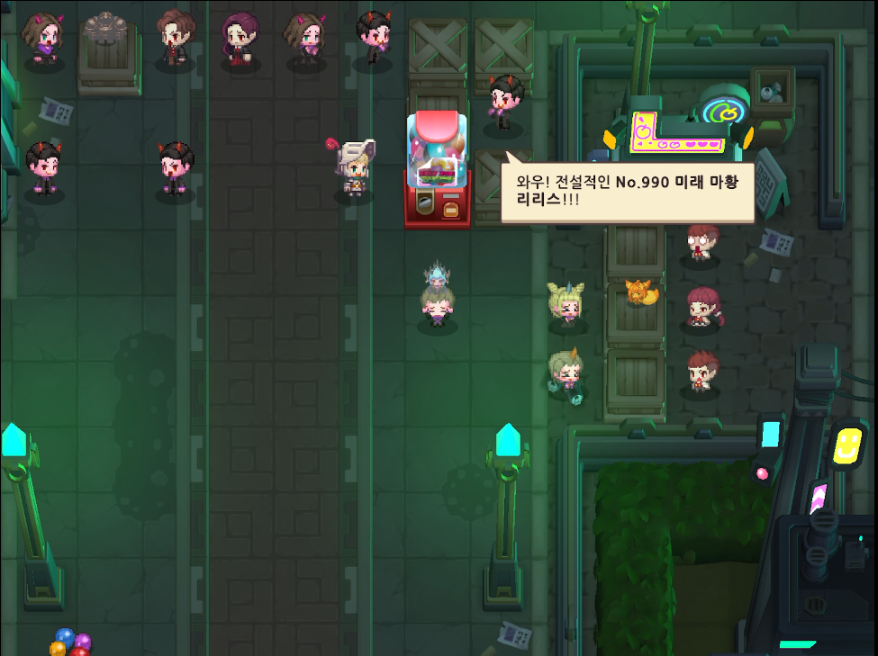 잊혀진 영웅 라피스, 황금검은 마법사, No.990 미래 마황 리리스 피규어를 얻습니다. 소년에게 보상으로 태양제 가챠 머신 카드(전투 시작 시 보호막 +4.0% 증가)를 얻습니다. 이상으로 가디언테일즈 월드14-17 중앙 피라미드 공략을 마칩니다.