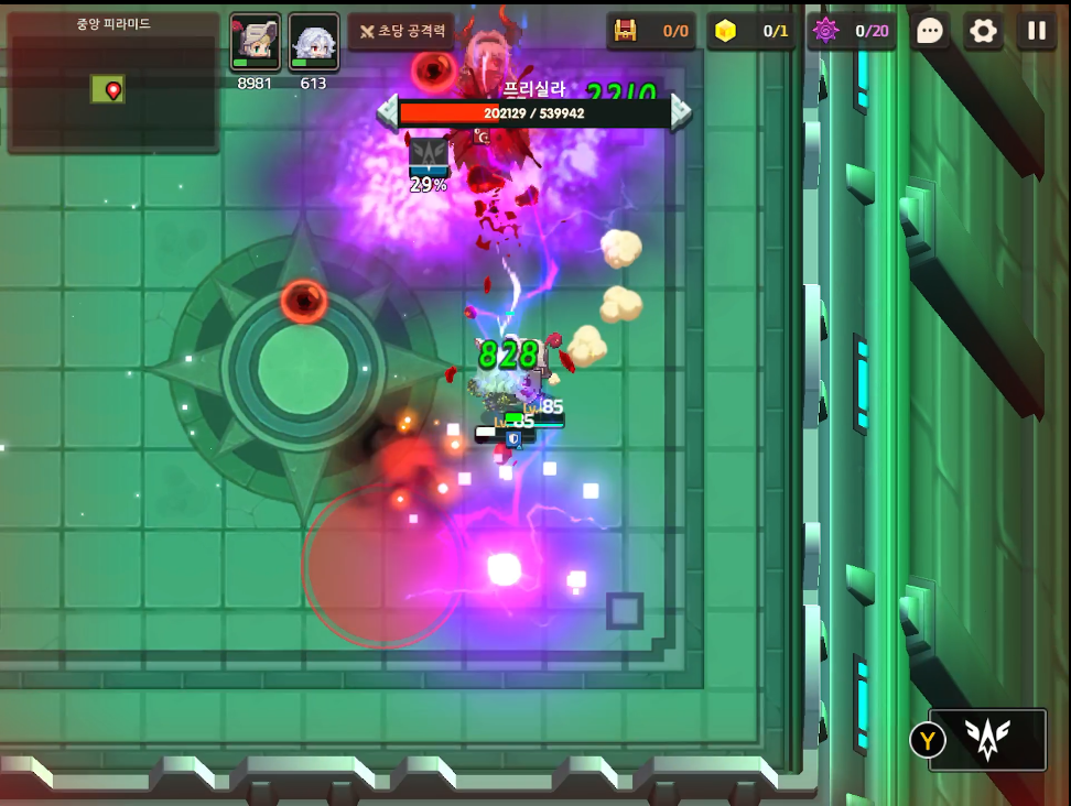 보스 클로드와 비슷한 패턴입니다. 피구슬을 먹으면 체력을 회복합니다. 하지만 피구슬이 떨어진 지점에 번개도 떨어지니 일단 번개를 피하고 피구슬로 회복합니다.