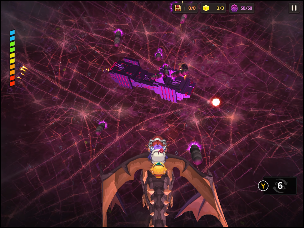 크로셀을 타고 함선으로 진입하는 미니게임이 있습니다. 피격 판정이 날개에도 있어 미사일을 피하기 꽤 어렵습니다. 왼쪽의 체력을 모두 잃으면 중간 세이브 지점 없이 처음부터 다시 시작해야 합니다. 이상으로 가디언테일즈 월드15-1 마계 중심가 공략을 마칩니다.