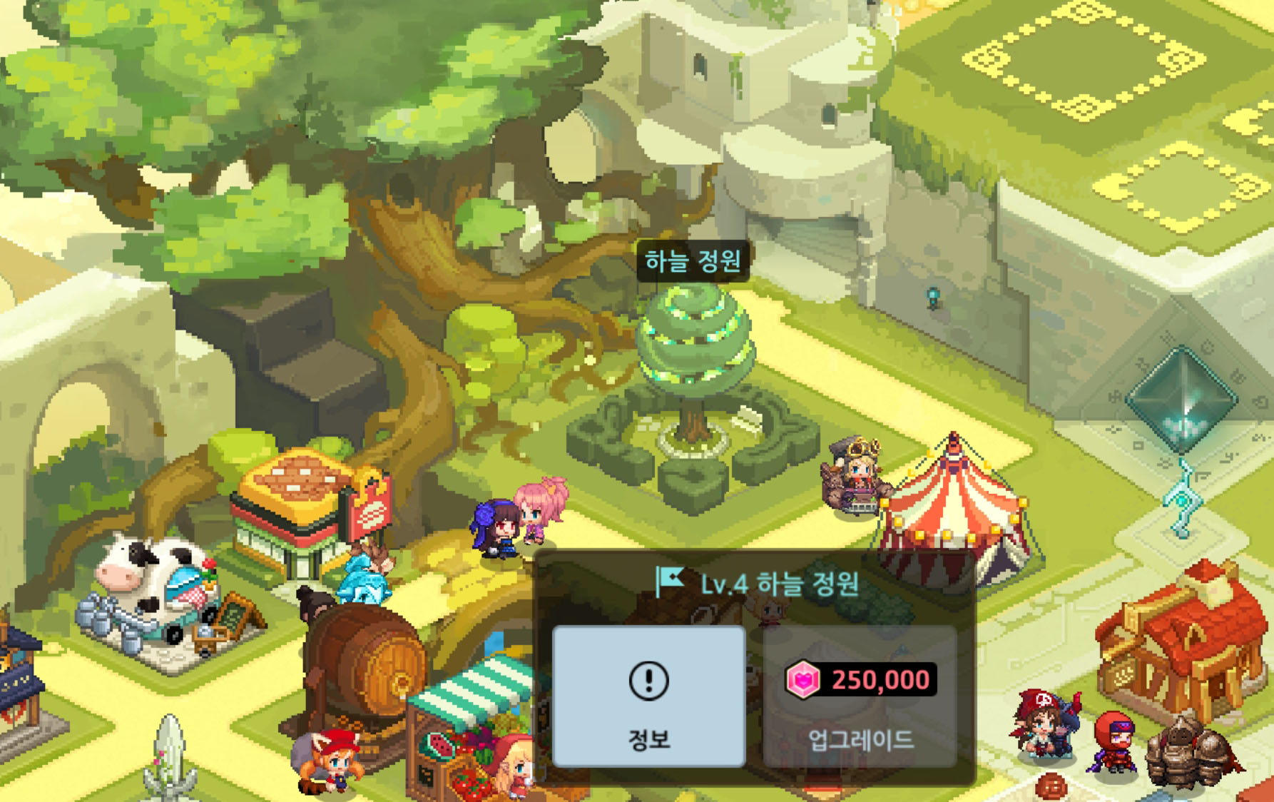 가디언 테일즈를 처음 시작하고 부유성 여관을 업그레이드하려 했는데, 하늘정원 레벨이 부족해 업그레이드를 하지 못했다. 10여분간 이곳저곳 클릭해보면서 찾은 하늘정원 나무.