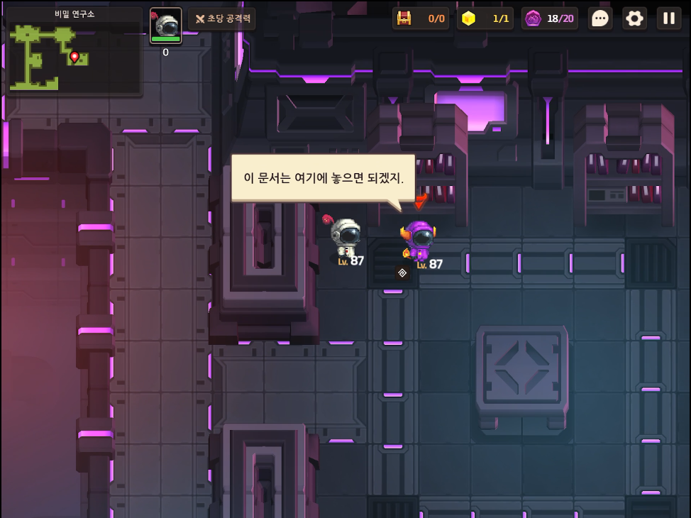 가디언테일즈 월드15-15 1 비밀 연구소 공략입니다. 월드15-5 중앙 제어실의 서브 스테이지로 인기 게임 '어몽 어스'를 패러디했습니다. 인베이더 연구원들을 모두 제거하는 미션으로 어려운 전투나 퍼즐이 없어 가볍게 즐길 수 있는 스테이지입니다.