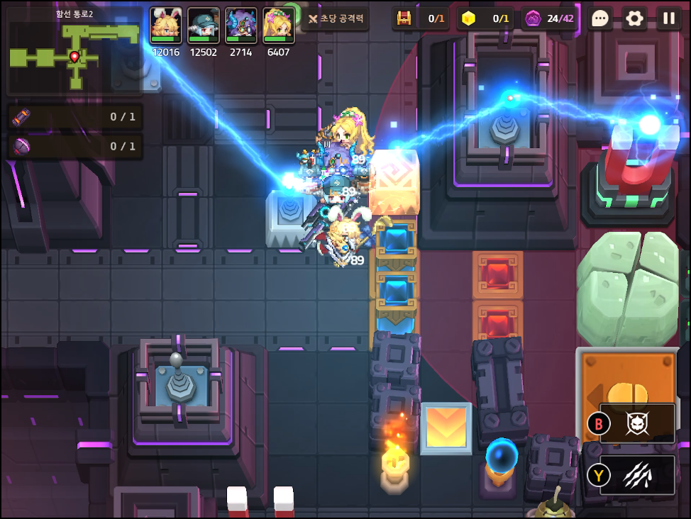 | 인베이더 척탄병, 저격병 등의 공격이 매우 높고, 맞으면 기술마저 끊깁니다. 저격병이 보이면 먼저 처리했지만 여러번 부활하며 진행했습니다. 보스방의 컴퓨터 보스는 체력이 매우 많지 많지만, 공격력이 형편없어 그리 어려운 편은 아닙니다. 스위치가 있는 곳에서 폭탄과 스위치를 활용하는 퍼즐이 있습니다. 어렵진 않으나 빠르게 진행하실 분은 밑의 공략을 참고하세요. |