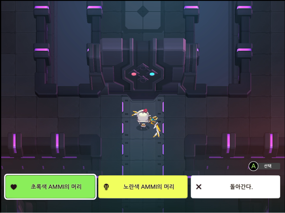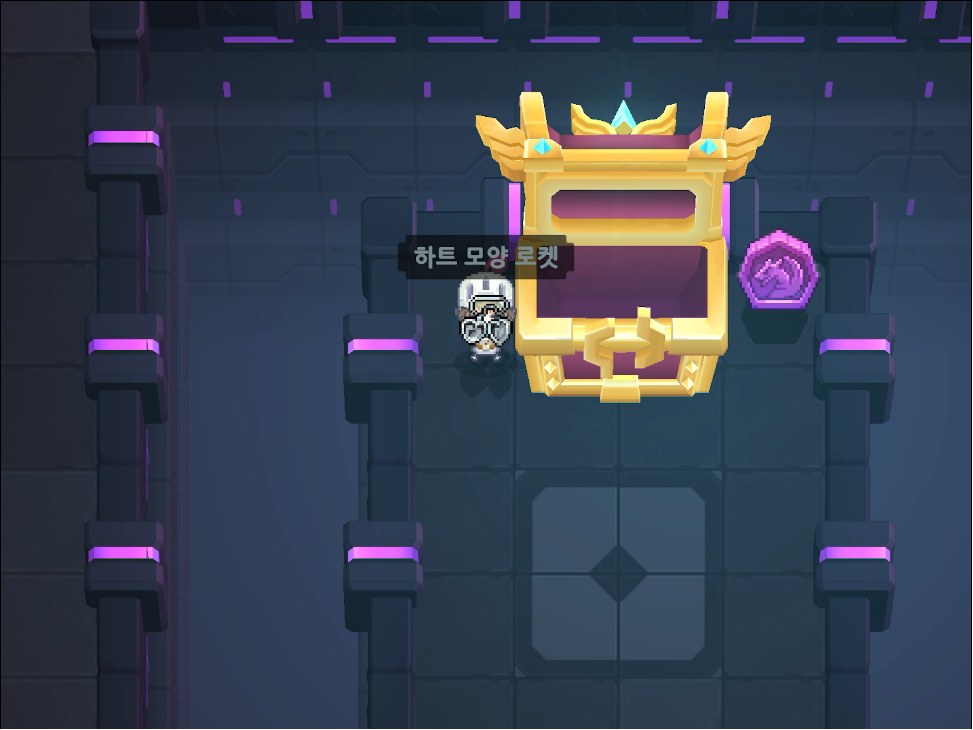 준비한 4개의 AMMI의 머리가 있으면 문이 열린다. 방에 하트모양 로켓과 퍼플코인이 있다.